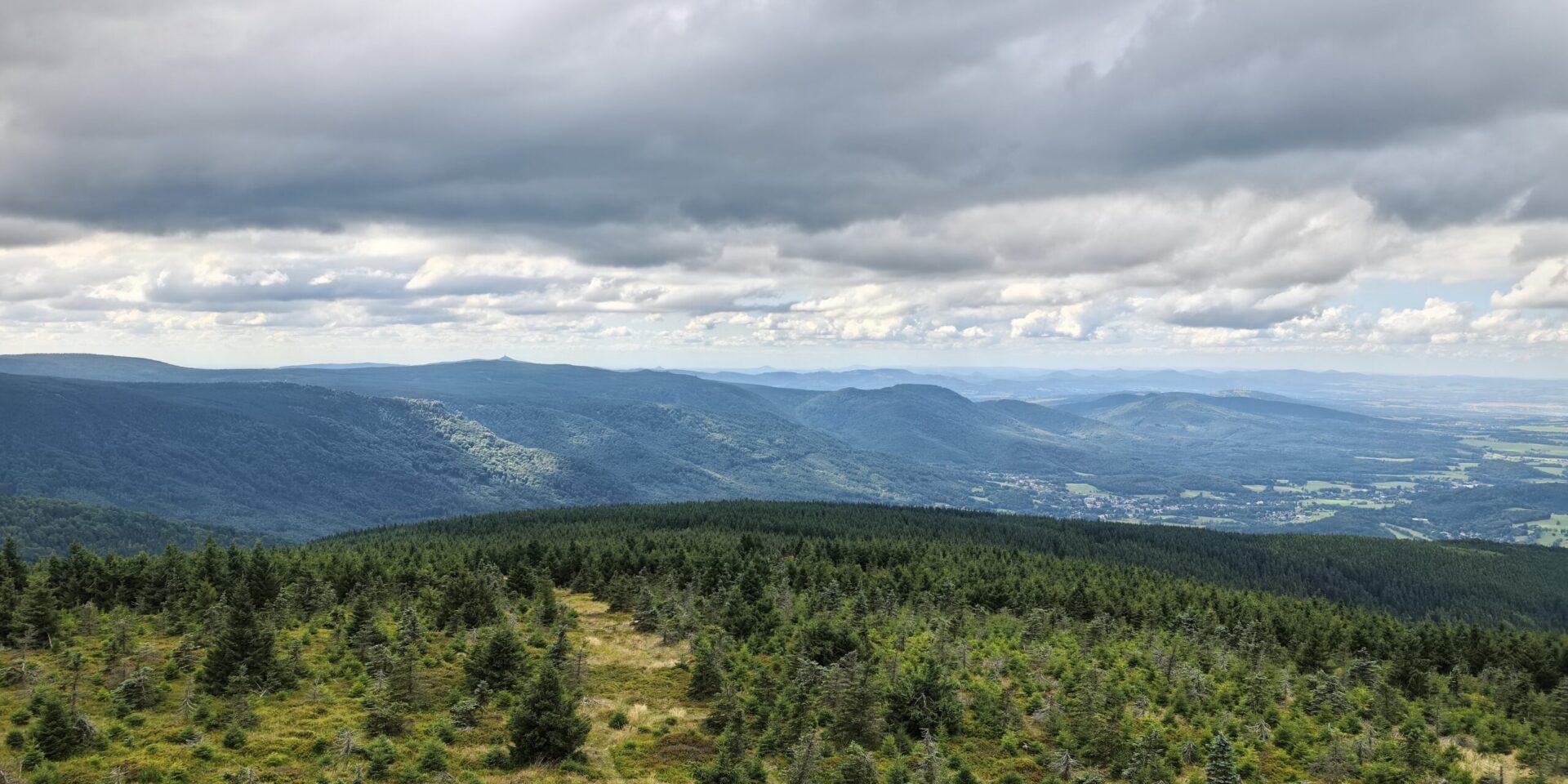 Po odpoczynku ruszyliśmy dalej w stronę Smreka (1124 m n.p.m.), który leży tuż za granicą, po stronie czeskiej. Na szczycie stoi wieża widokowa, z której panorama naprawdę robi wrażenie. To świetny punkt na zdjęcia i chwilę kontemplacji – widać zarówno Góry Izerskie, jak i Karkonosze.