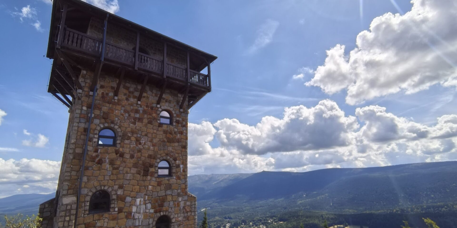Największe wrażenie zrobiła murowana wieża widokowa. Zimą, oblodzona, podobno wygląda jak scenografia z „Wiedźmina”. Latem za to daje kapitalny widok na Karkonosze i Izery.